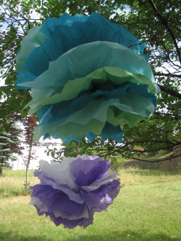 I layed out wrapping paper on the table for decoration, and hung origami paper on string around the room.... They made perfect banners....