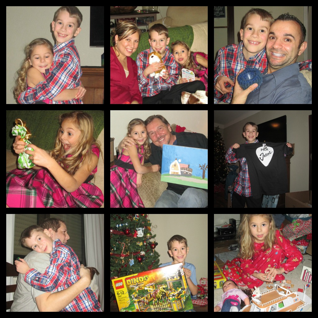 Each  year since the kinders were tiny, they do a little performance before we open gifts.... They sing a song, say a poem, and one year we did the entire Nativity story with props. This year they read from Luke 2 (both were very proud as it was quite long....) and JT played for us on his Guitar... This is always such a blessing for us...I hope they will still do this (willingly) as they grow! =)